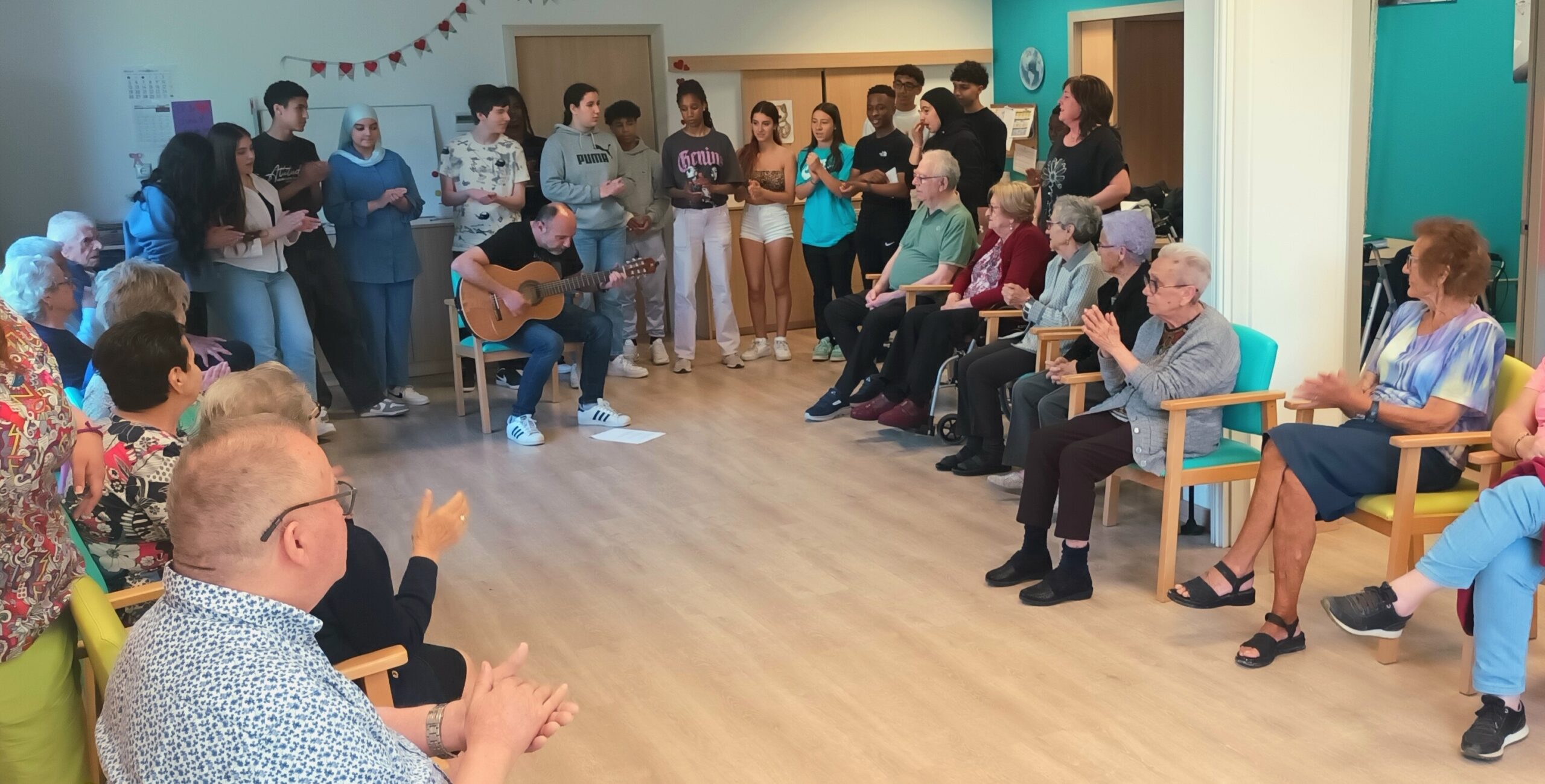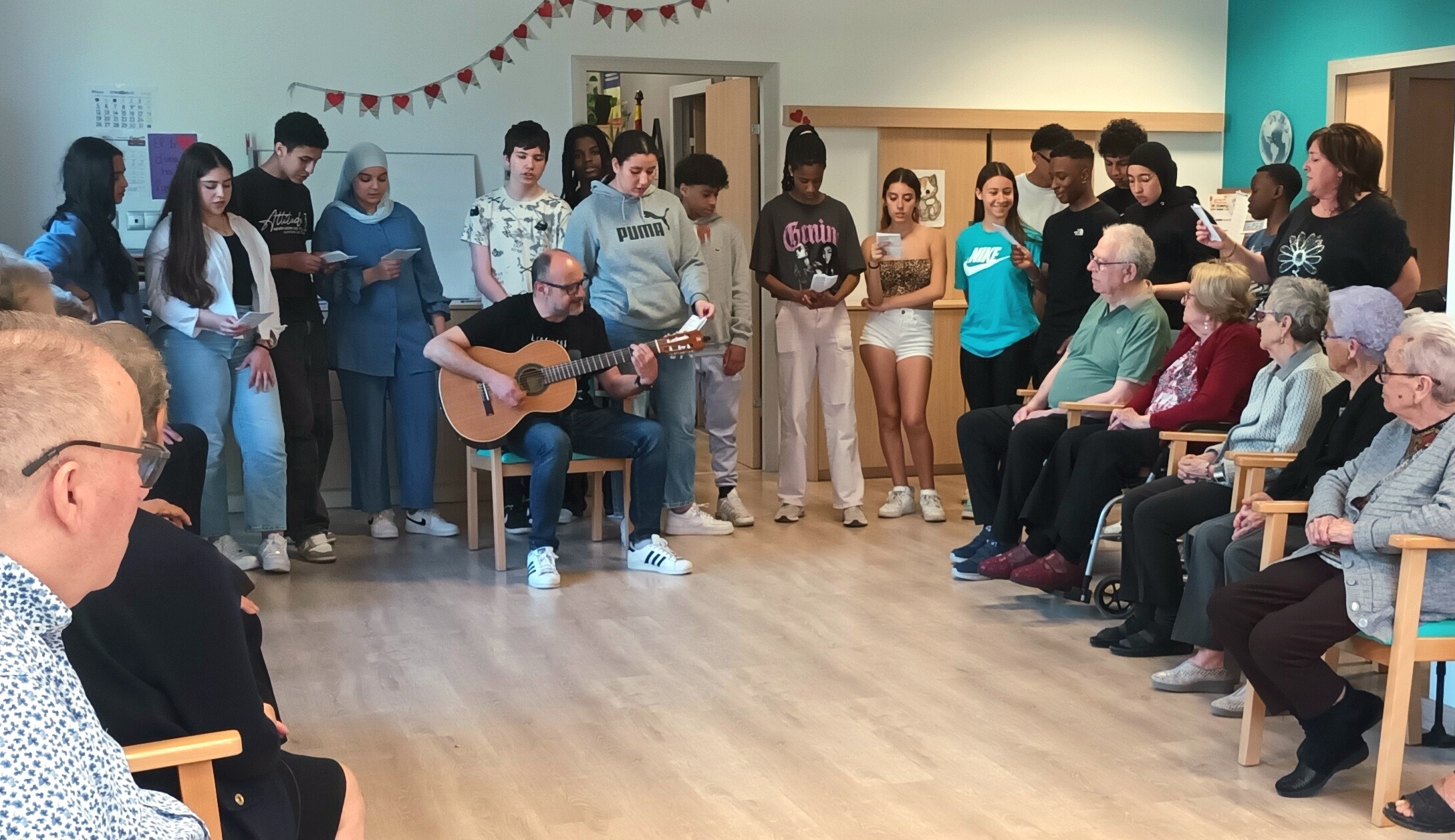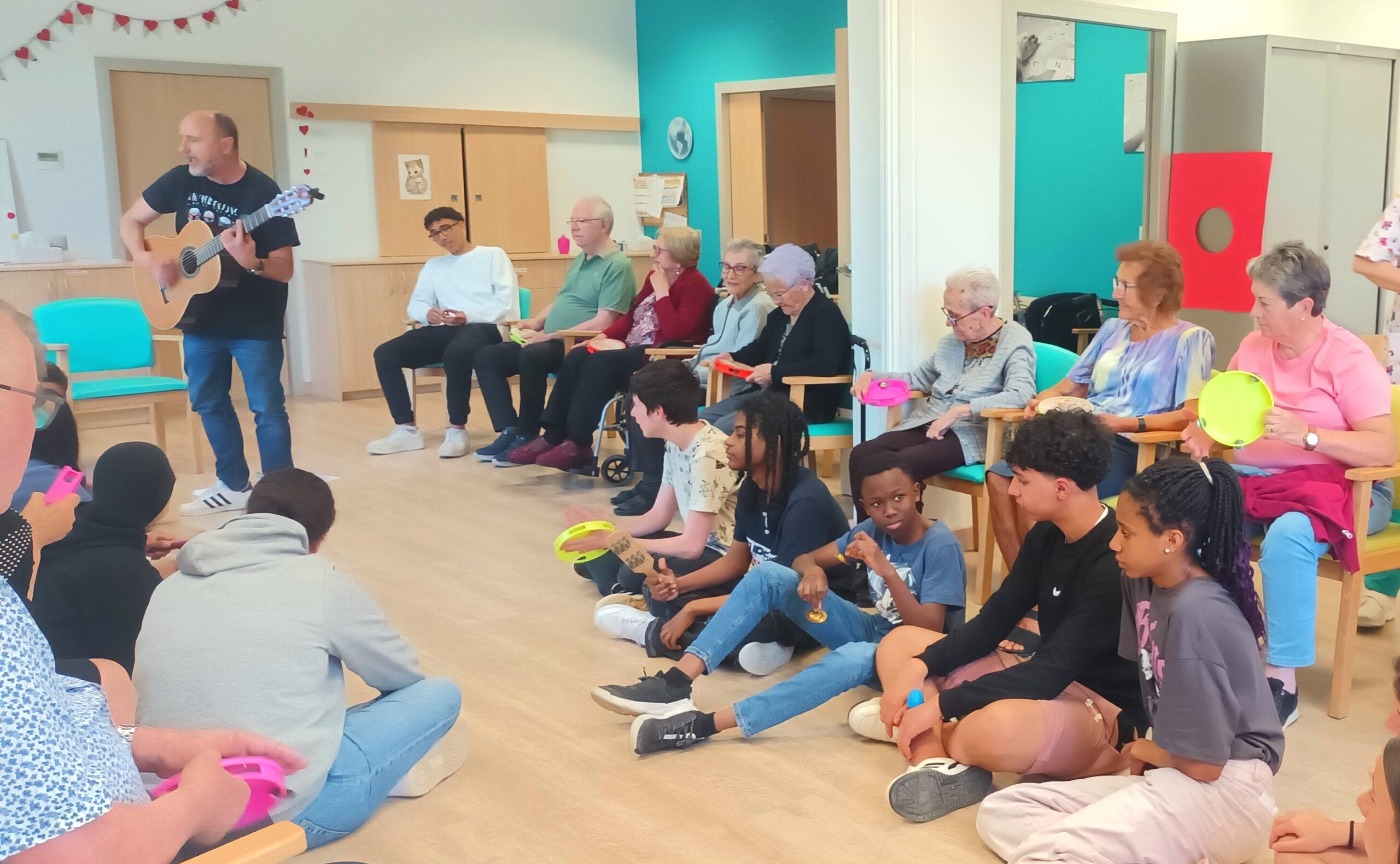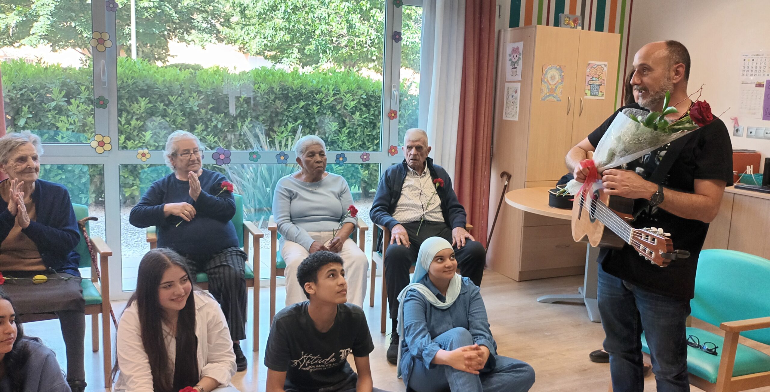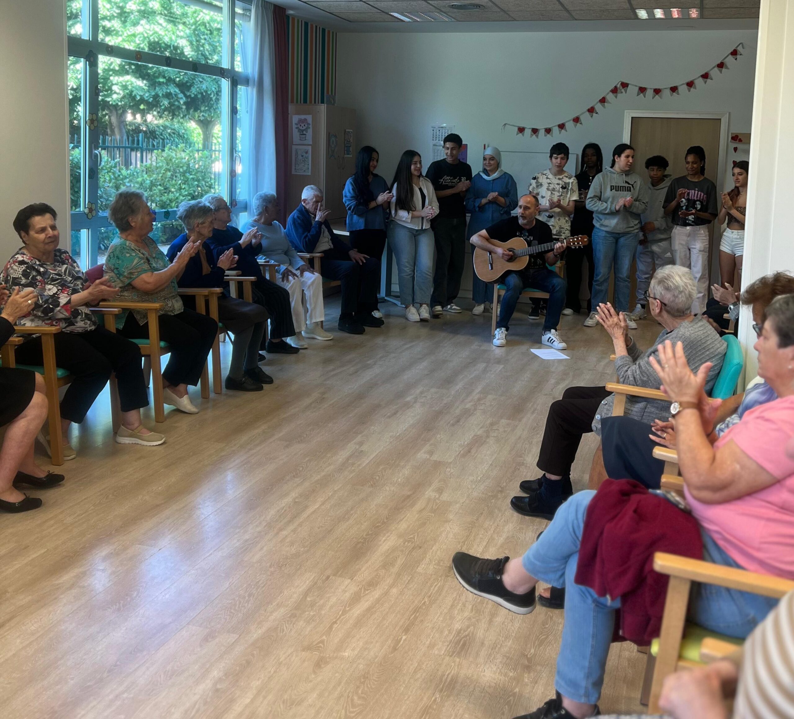 Avui 21 de maig hem celebrat el màxim esclat de primavera amb flors, guitarra, cançons i percussió al centre Alzheimer Alt Empordà.