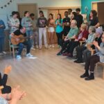 Guiats pel cant i la música de guitarra del professor Jordi Casals, els nostres estudiants han interpretat peces emblemàtiques sobre el camí de la vida: ” Caminante no hay camino” i “Palabras para Julia”, dels poetes Antonio Machado i J.A.Goytisolo.