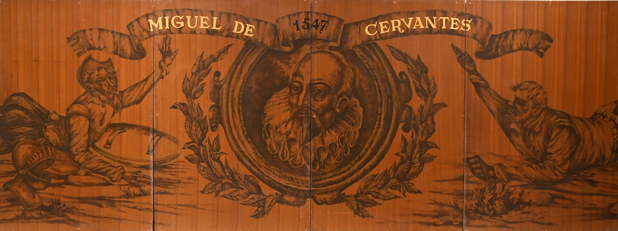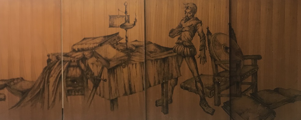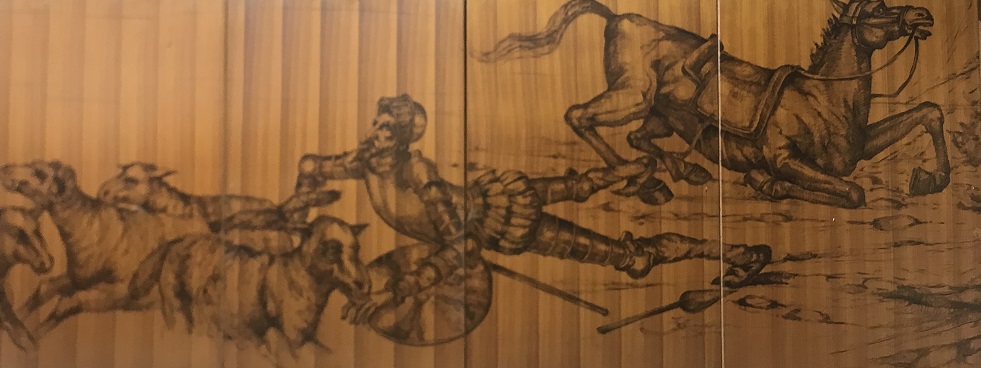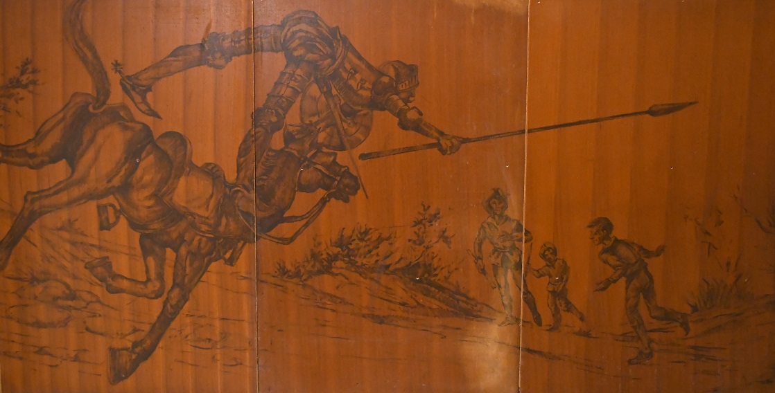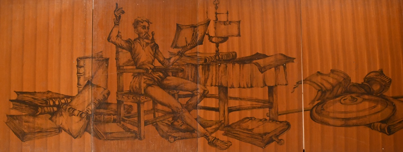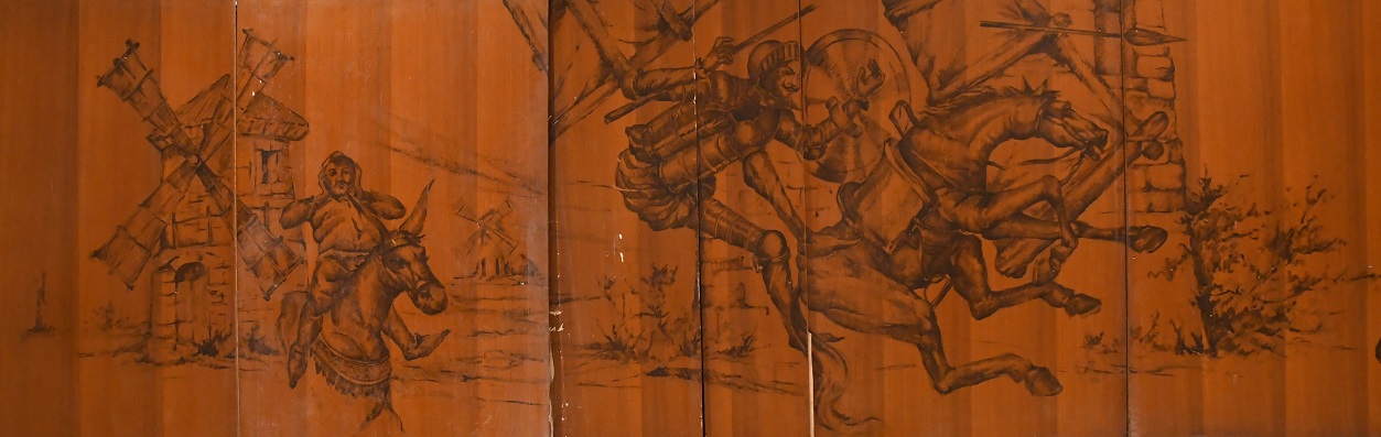 La Sala Quijote estava decorada amb una singular proposta artística; a uns tres metres d’alçada, i envoltant tot el perímetre de la sala –més de 100 metres−, hi havia un seguit de dibuixos que reproduïen diverses estampes del Quixot.