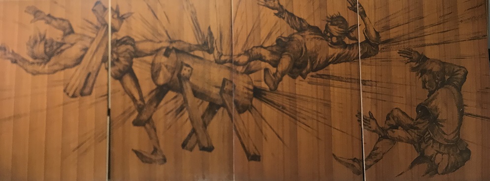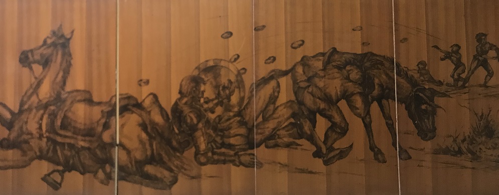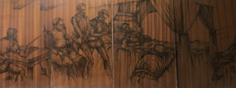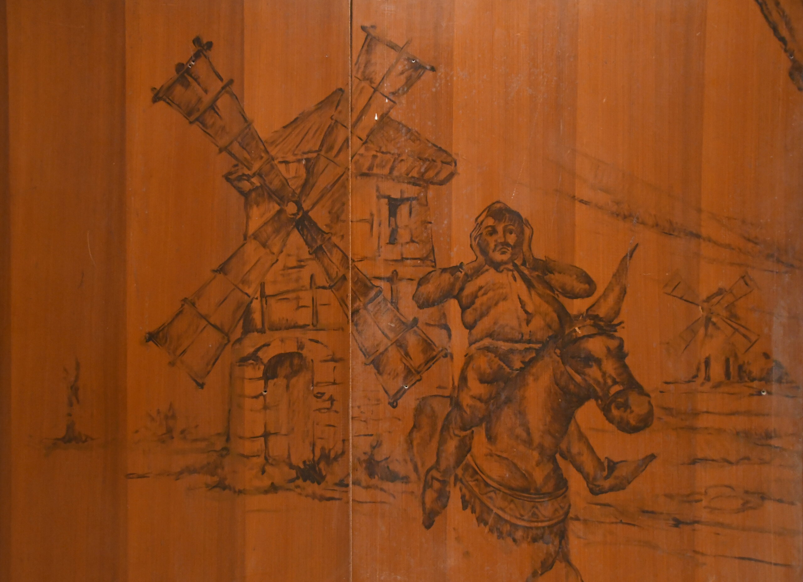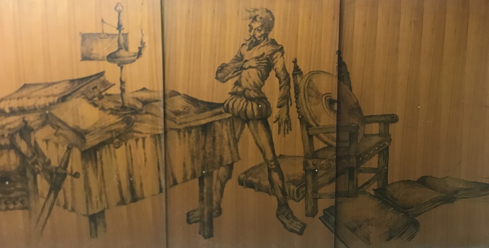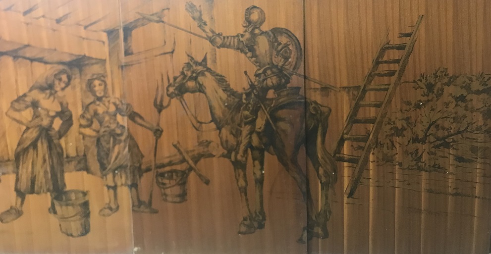 La Sala Quijote estava decorada amb una singular proposta artística; a uns tres metres d’alçada, i envoltant tot el perímetre de la sala –més de 100 metres−, hi havia un seguit de dibuixos que reproduïen diverses estampes del Quixot.