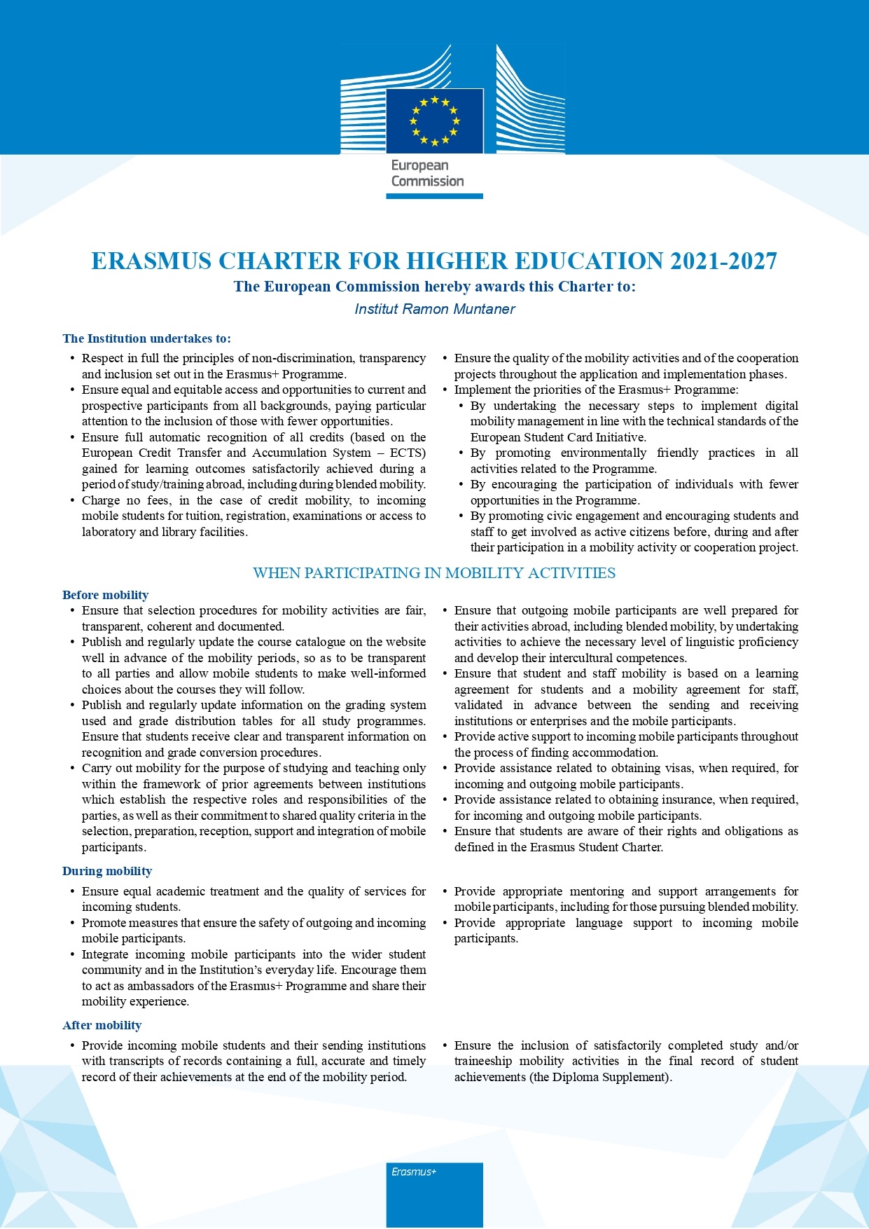 Erasmus Charter for Higher Education 2021-2026