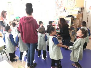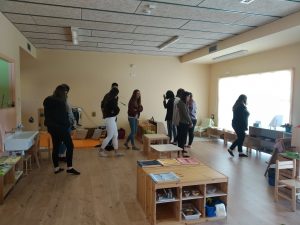 La tercera sortida és a l’escola Montessori- Palau Figueres, al mes d’abril, en aquest cas la cap d’estudis ens explica el projecte educatiu que tenen a infantil, la metodologia utilitzada i ens mostra els materials Montessori per treballar etc. Veiem com es va desenvolupant el dia a dia a les aules i els recursos de l’escola Montessori. Durant el mes d’abril també visitem o rebem al nostre centre, l’escola Waldorf La Font de Vic. Si podem ens desplacem a Vic, on ens expliquen el seu projecte educatiu, veiem les instal·lacions, patis, diferents recursos educatius i ens expliquen en què consisteix un dia a dia en una escola infantil Waldorf.