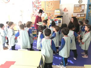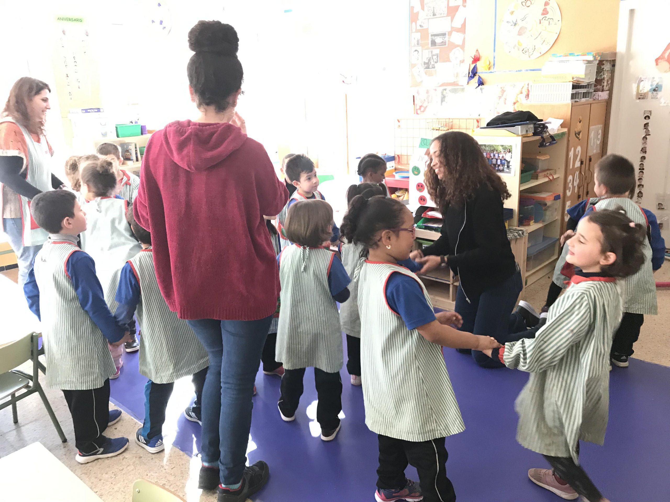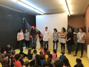 Cada curs es treballa una temàtica concreta i des d’aquesta proposta l’alumnat prepara la representació d’un conte, dinàmiques i jocs cooperatius pels infants d’infantil de les escoles de Figueres, amb l’objectiu de treballar la Pau Positiva i reflexionar sobre ella. Treballar la Pau amb els grups d’infantil té a veure amb les seves vivències més quotidianes, les relacions amb els altres i la resolució de conflictes.