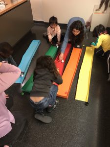 La primera és una visita al Museu, on es recullen les impressions de l’alumnat des de la vessant més emocional. També ens interessa conèixer els espais i els materials de què disposa. Seguidament, es treballa a l’institut, amb la recepció dels coneixements teòrics i les estratègies per aprendre a crear jocs i adaptar-los, per tal de motivar la participació dels infants. Finalment es fa la implementació amb grups de P3, P4 i P5.
